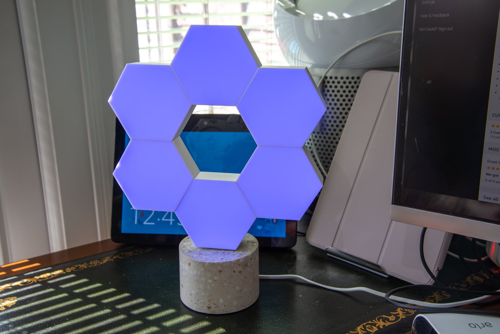 One lamp panel connects with the base, and other panels connect from the top. You can arrange them in your preferred pattern. Moreover, the hexagon lamp has the same functionality as the wall panels; it has 16 million colors and smart-app support.