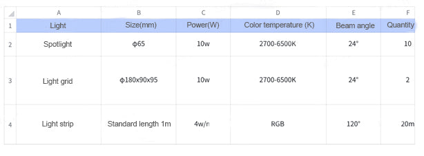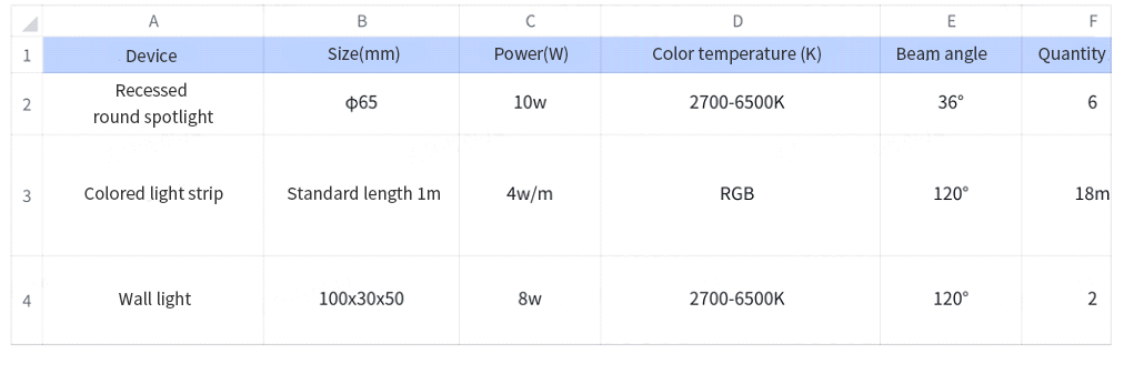 Group the downlights or spotlights except for the light above the coffee table, and group the ceiling light strips, so that the light groups can be operated in a unified manner in the future.