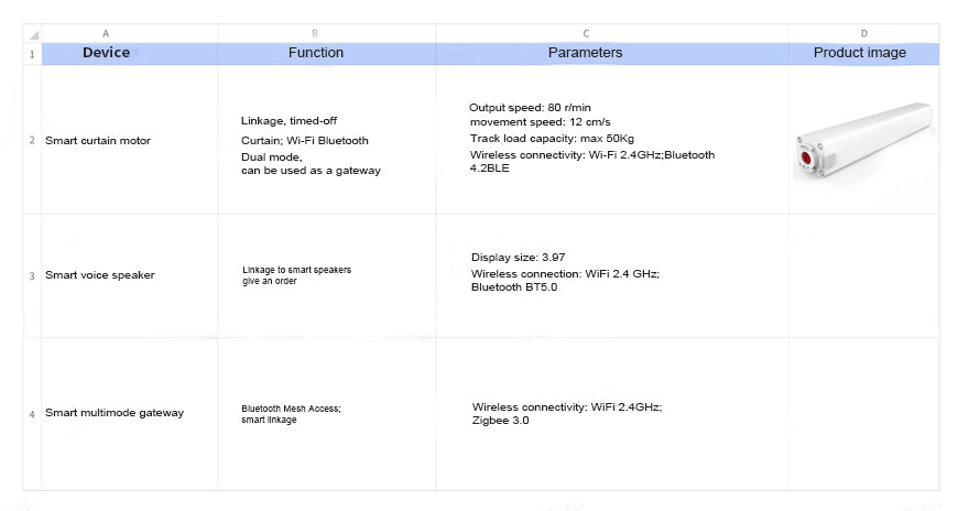 In accordance with the advice provided in the product manual, hook up the smart luminaire, smart curtain, and speaker to your smart home system.