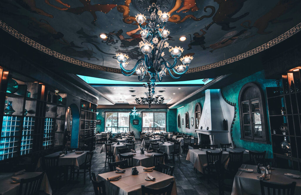 Depicted in Fig. 1, is a typical lighting design of high-end Western restaurants. Western restaurants feature a few practical lighting fixtures but are highly effective at generating ambiance with a range of ornamental fixtures. In addition, Western restaurants are also clever in employing colored light to create character.