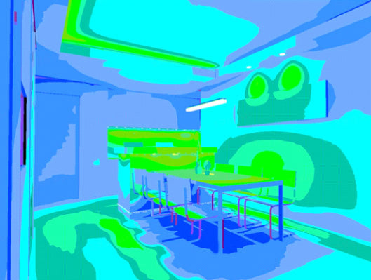Fig. 37 Pseudo-color chart of the light effects and illuminance for a welcoming environment