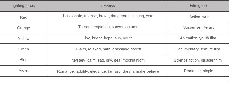Fig. 3 Relationship between lighting tones and film genre