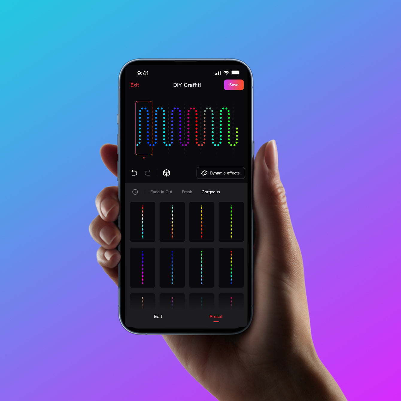 • Dazzling preset lighting effects